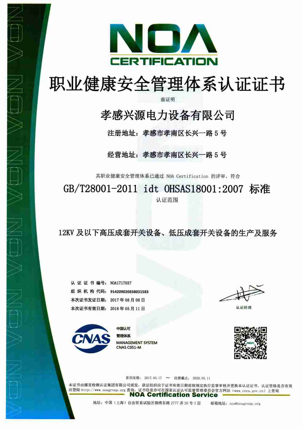 職業(yè)健康管理體系證書(shū)