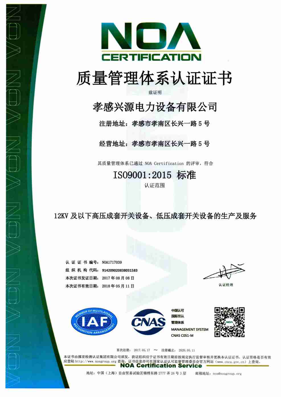 質(zhì)量管理體系證書(shū)